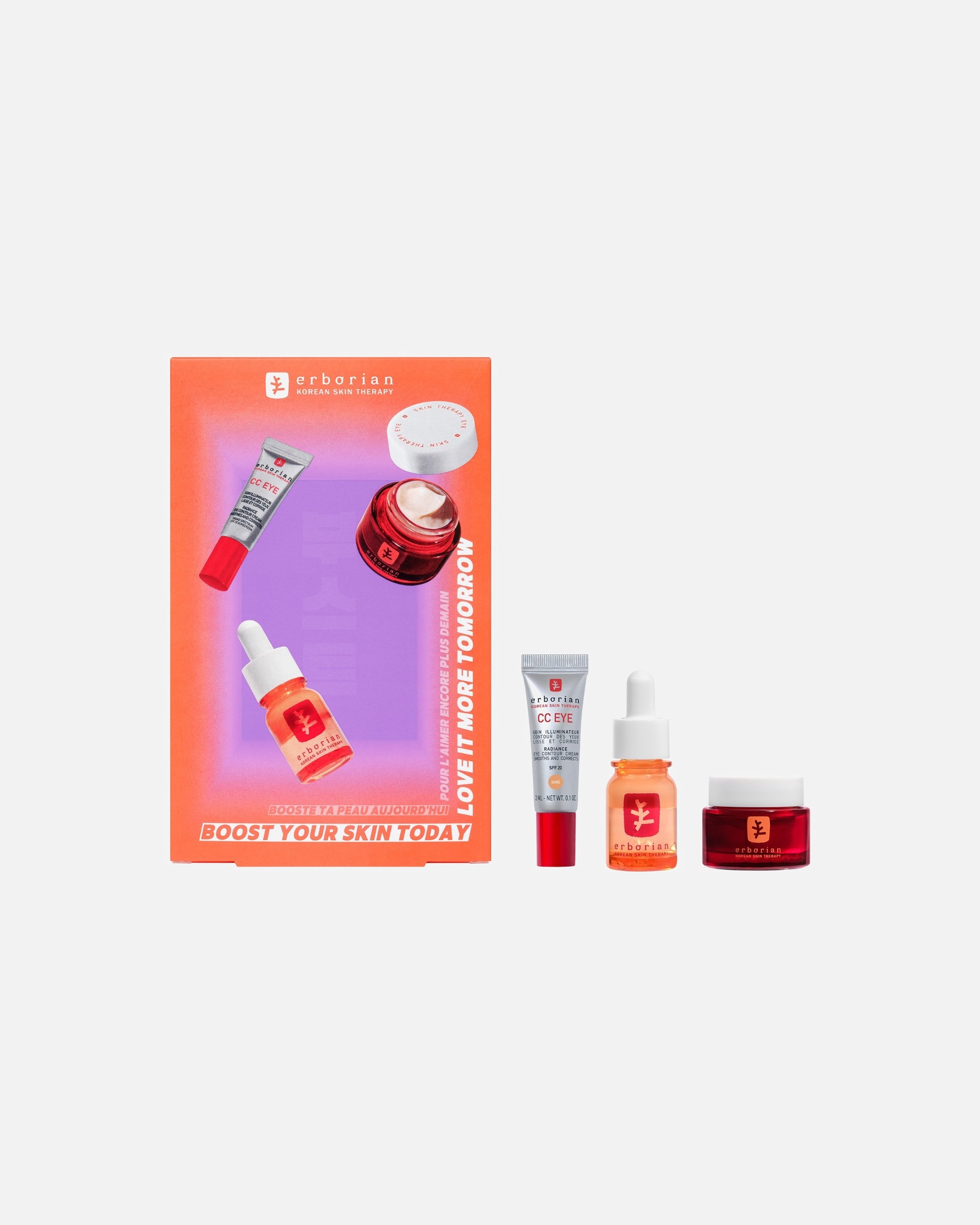 Depuis des générations, les Coréennes pratiquent le layering : une routine beauté qui consiste à appliquer de nombreuses couches de soins différents, selon des principes transmis de mère en fille. La marque partage ce savoir avec vous grâce à la Smart Routine Erborian, une routine en trois étapes : DETOX, le double nettoyage coréen, BOOST : le soin de la peau grâce aux bienfaits des plantes coréennes et FINISH : les produits hybrides pour un teint clair. Libre à vous de suivre cette routine, ou d’utiliser les produits Erborian comme bon vous semble.