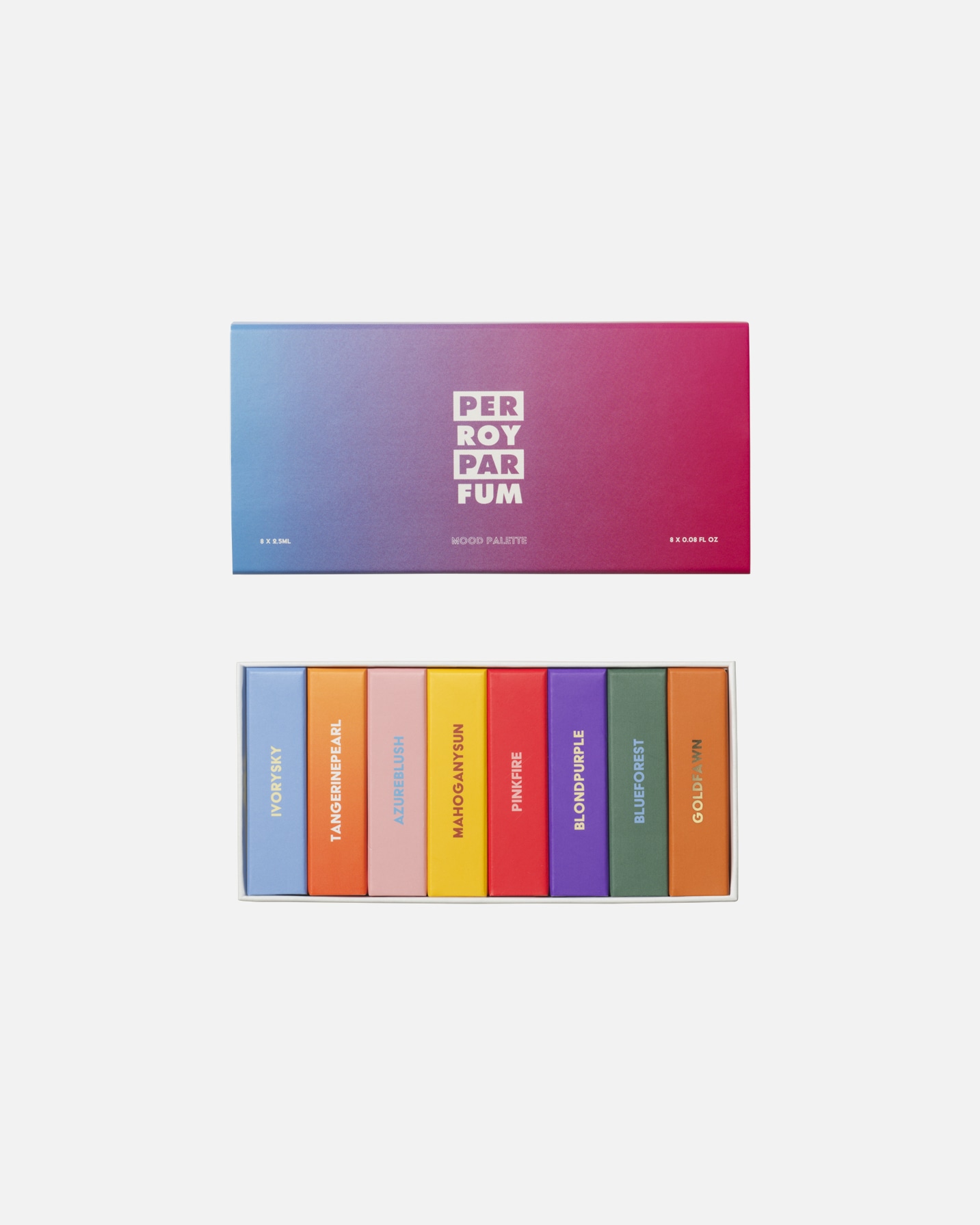 Tous les parfums Perroy sont pensés pour être portés par toutes et tous. Laissez-vous simplement guider par vos envies. Si vous ne savez pas quelle fragrance Perroy choisir, commencez par la Perroy Mood Palette – un coffret de 8 parfums qui réunit tous les incontournables de la collection Perroy. Disponible en deux formats : la version de 15 ml, idéale pour emporter vos fragrances préférées partout avec vous, ou la version de 2,5 ml, parfaite pour tester quelques gouttes et trouver celle qui vous correspond le mieux.