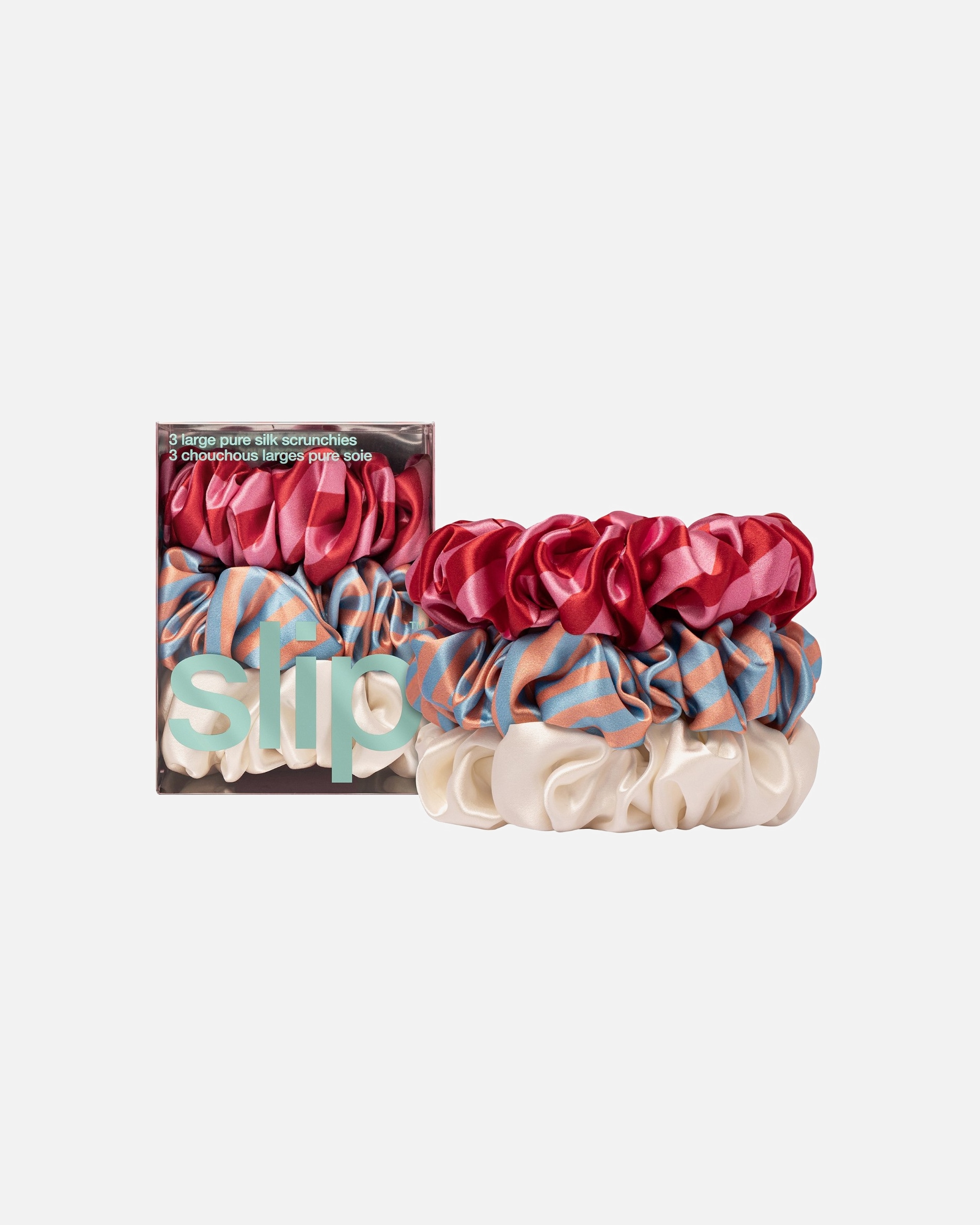 Coiffez vos cheveux en une queue de cheval élégante, un chignon soigné ou simplement dégagez votre visage grâce aux élastiques Slip. Découvrez des scrunchies en soie, doux pour vos cheveux tout en offrant une excellente tenue. Disponibles en plusieurs tailles, des petits aux grands, ces modèles se déclinent dans des tons classiques comme noir, marron ou gris, ainsi que dans des couleurs vives comme rouge et orange. Laissez-vous tenter par des motifs originaux, fleuris ou des teintes éclatantes comme rose flashy ou bleu turquoise, pour des chouchous uniques signés Slip.